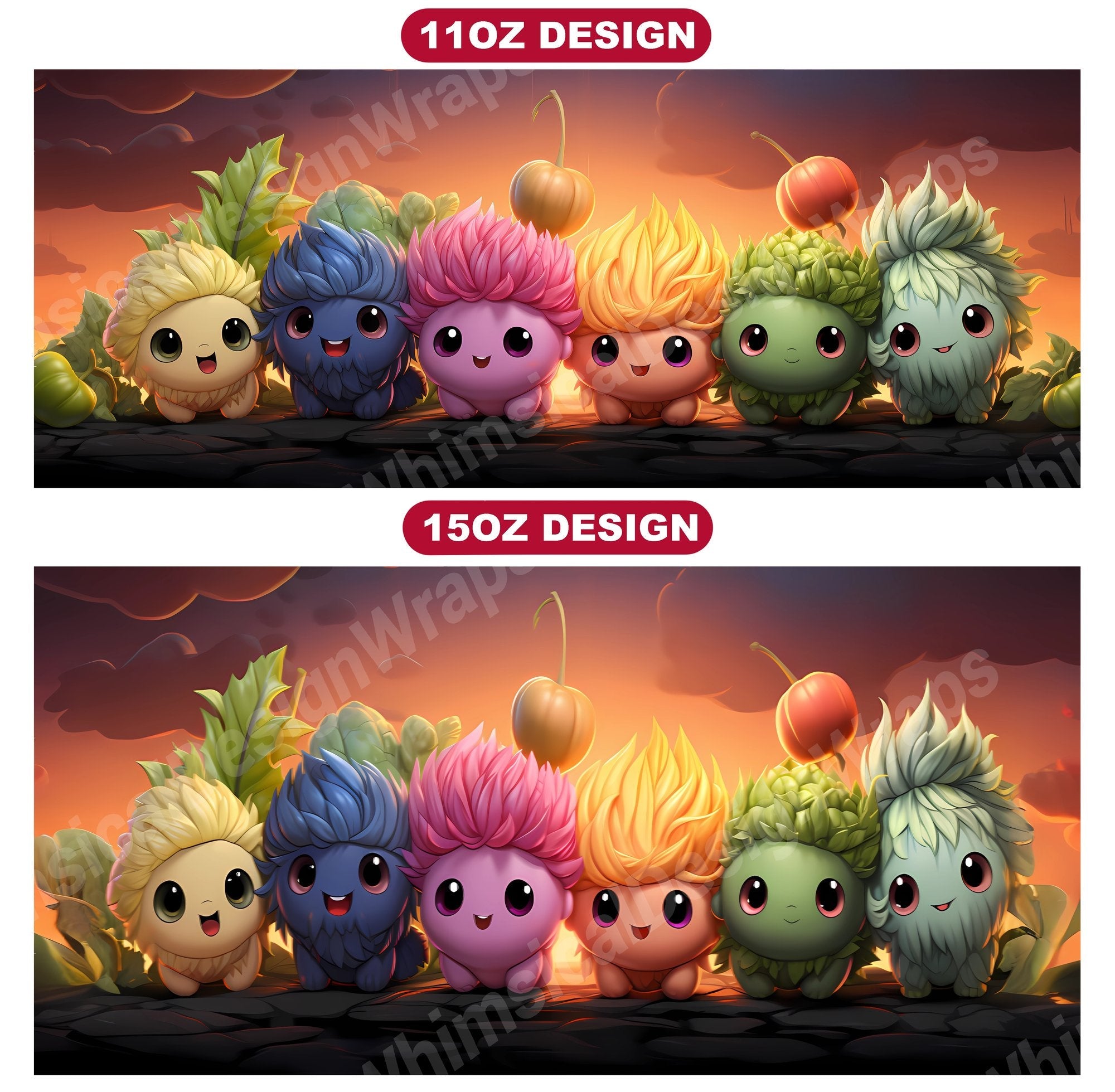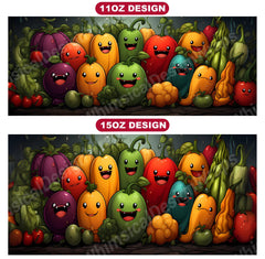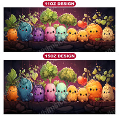 Harvest the adorableness with our Kawaii Vegetables digital mug wraps. These delightful designs showcase lovable vegetable characters and playful motifs, capturing the charm and wholesomeness of veggies, making them a charming addition to your mug collection and a perfect way to infuse your mornings with the sweetness and freshness of kawaii culture.
