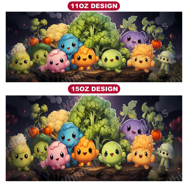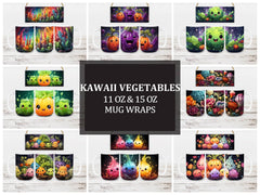 Delight in the freshness of our Kawaii Vegetables digital mug wraps. These charming designs feature adorable vegetable illustrations and soft pastel colors, evoking the wholesome and nutritious essence of garden-fresh produce, making them a delightful addition to your mug collection and a perfect way to start your day with a sprinkle of veggie-inspired joy and kawaii charm.