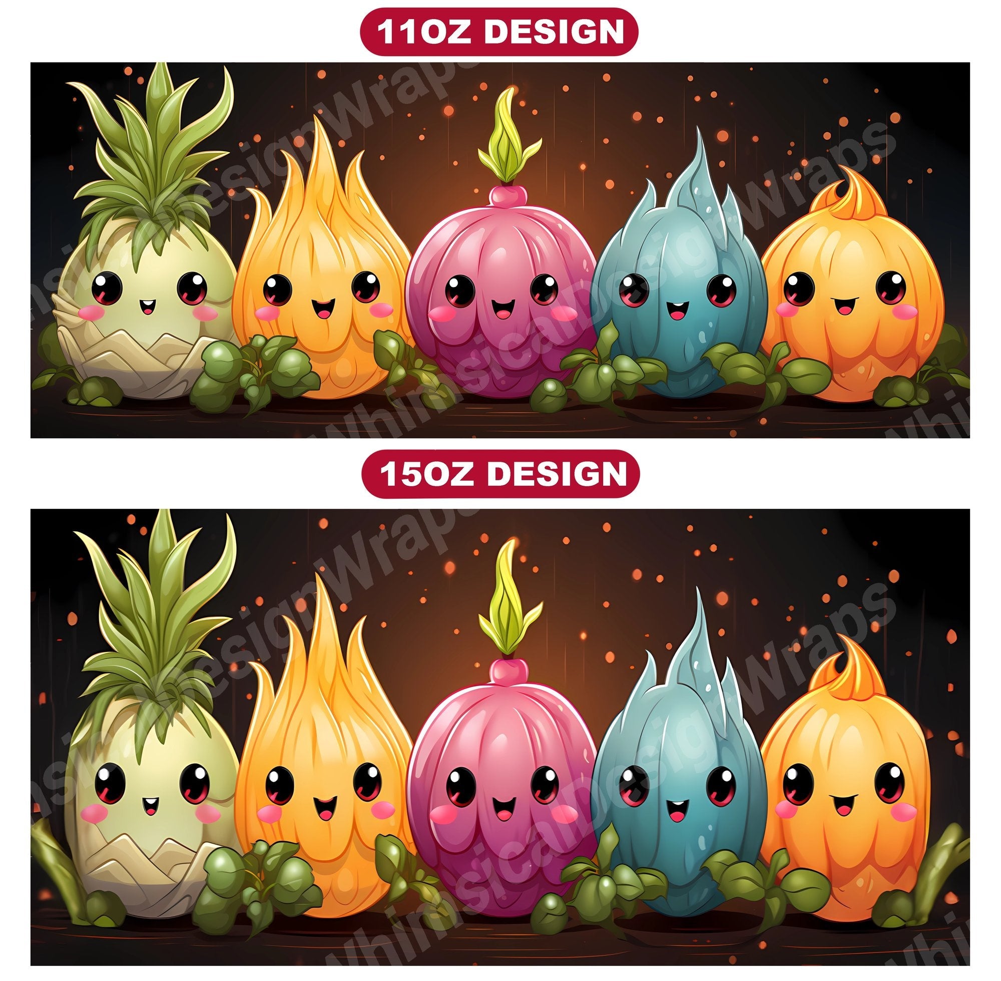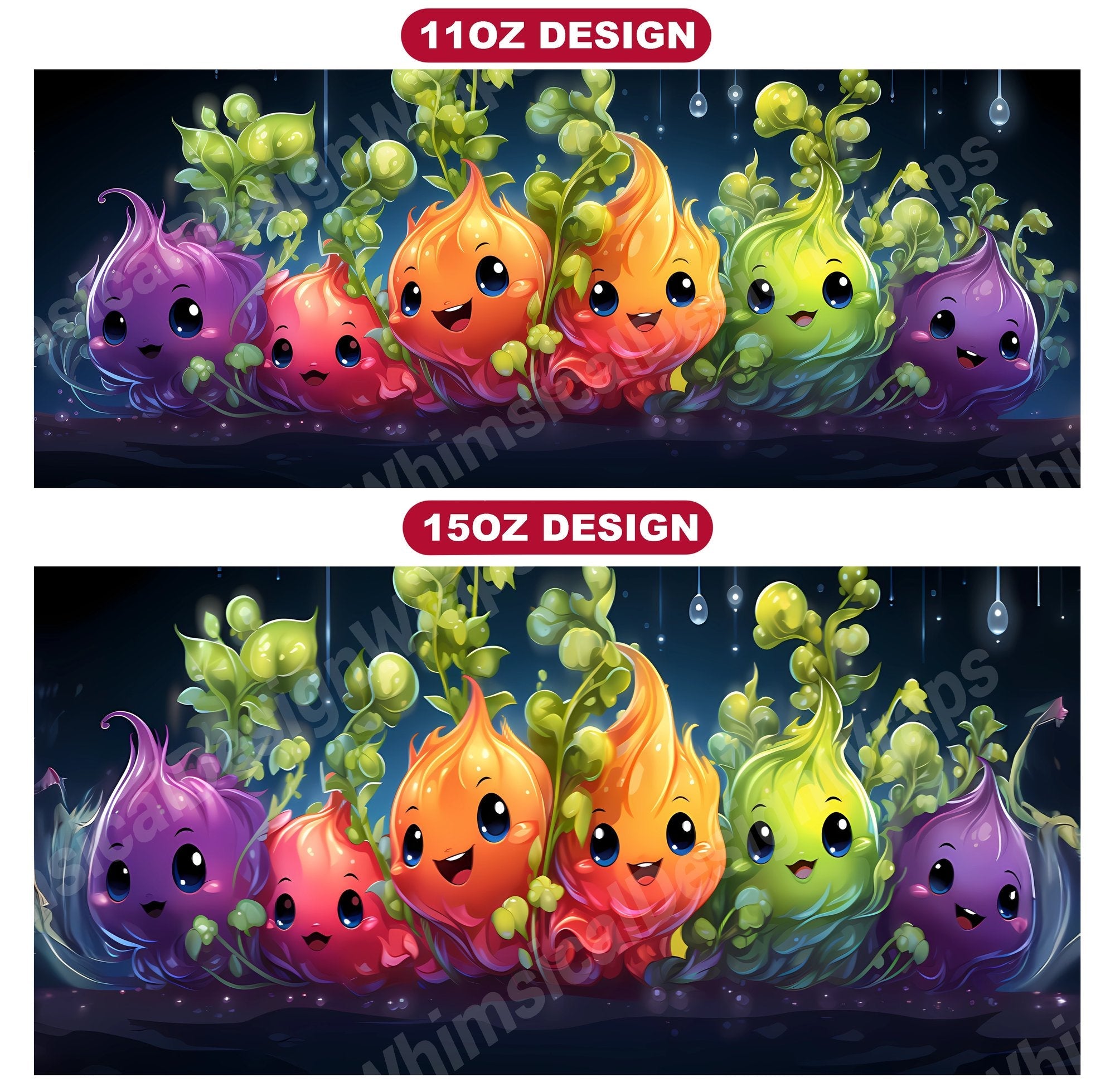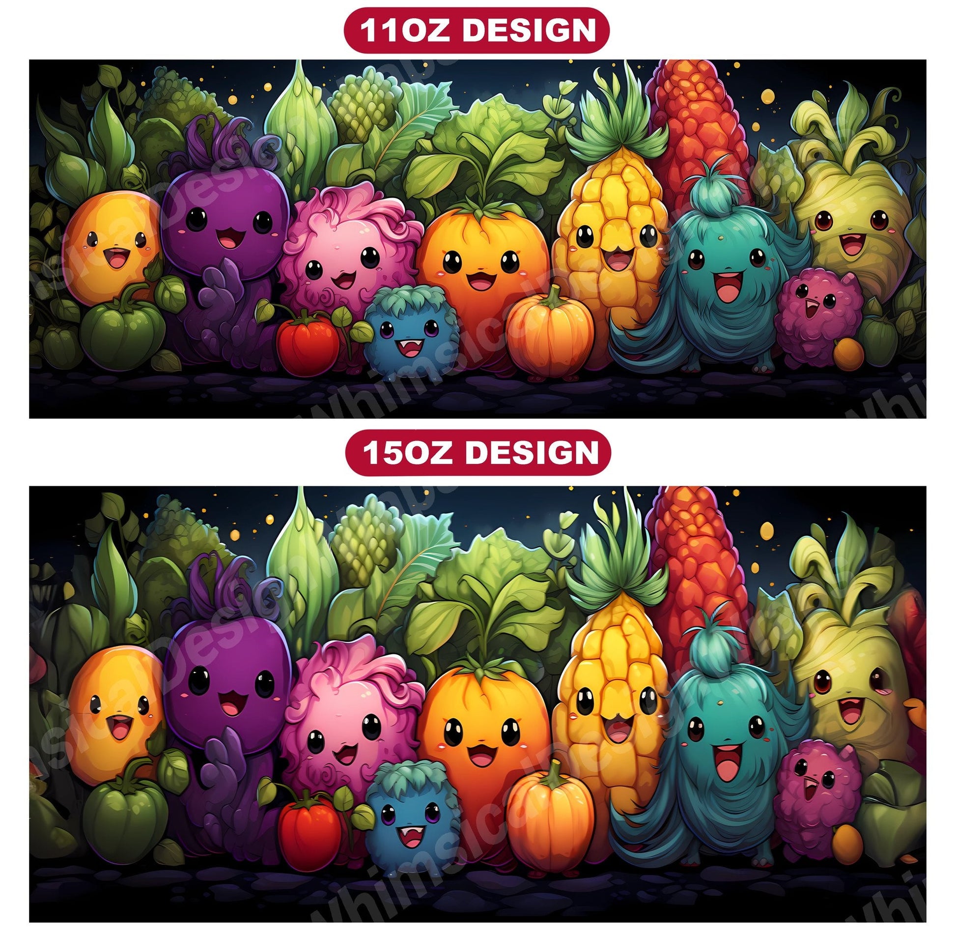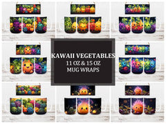 Harvest the cuteness with our Kawaii Vegetables digital mug wraps. These delightful designs showcase lovable vegetable characters and playful patterns, capturing the charm and vitality of veggies, making them a charming addition to your mug collection and a perfect way to infuse your mornings with the sweetness and freshness of kawaii culture.