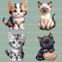 Cuddle with this Kittens 12 Clipart Bundle, featuring kitten designs, ideal for cat crafts.