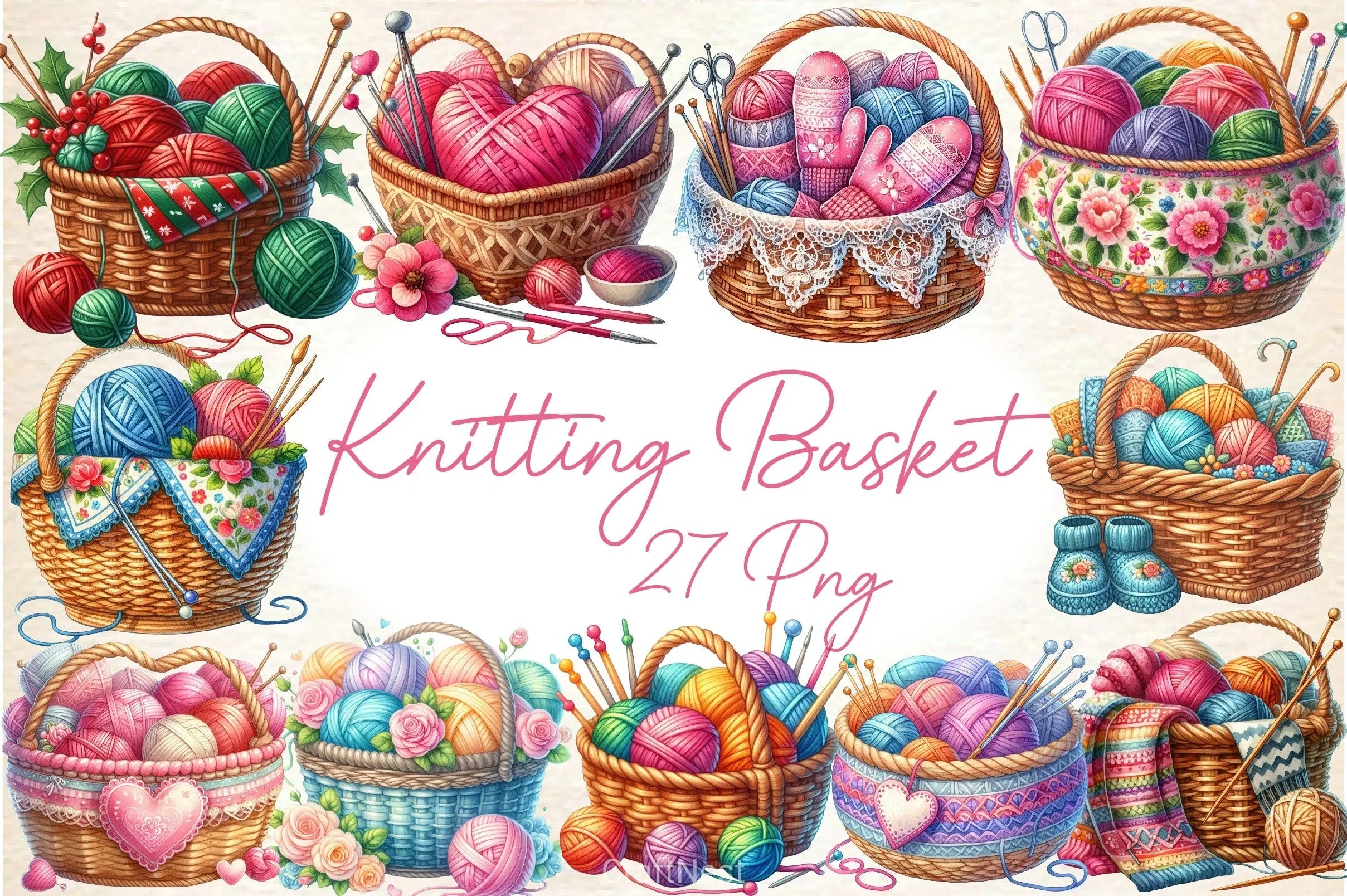 Enhance your creative projects with our Knitting Basket Clipart Bundle, featuring charming knitting-themed designs perfect for DIY crafts, scrapbooking, and personalized gifts.