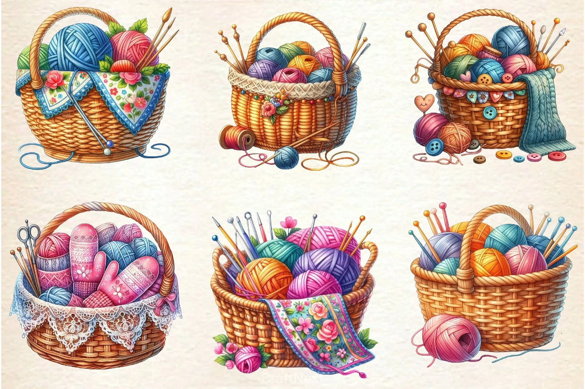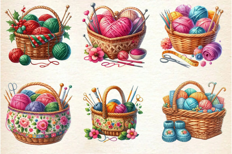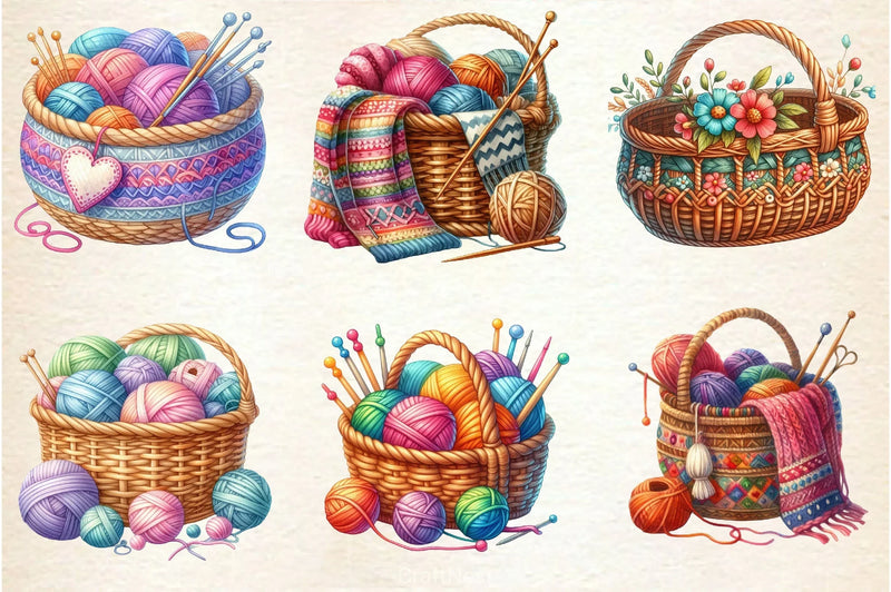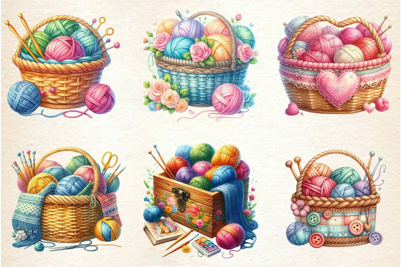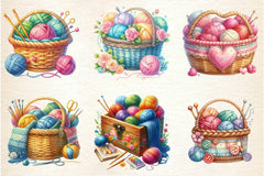 Knitting Basket Clipart Bundle
