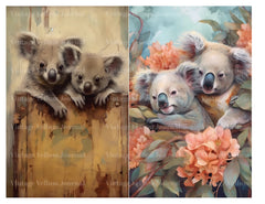 Embrace the cuddly charm of Australia's beloved marsupials with our Koalas digital junk journal! Featuring adorable illustrations of these iconic creatures, each page invites you to bask in the cuteness of koalas lounging in eucalyptus trees. Whether you're a wildlife enthusiast or simply adore these fluffy creatures, this journal is perfect for capturing their irresistible allure.