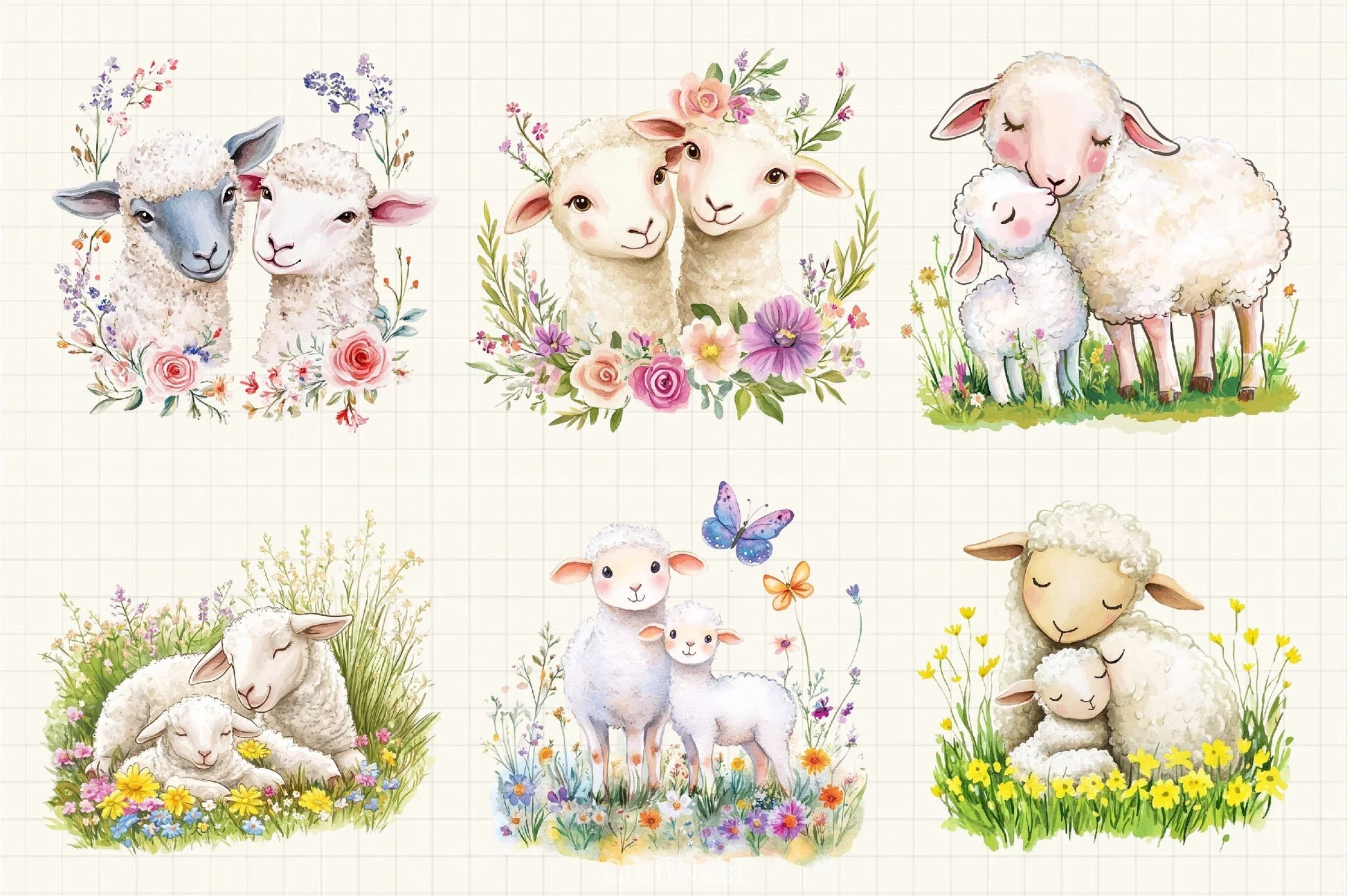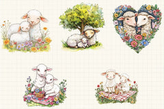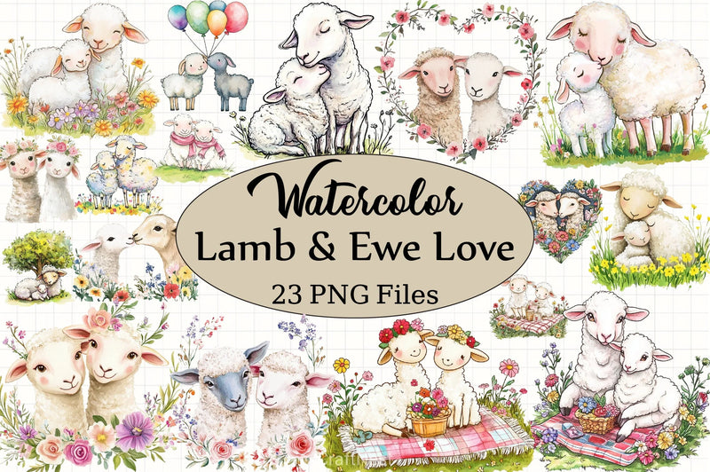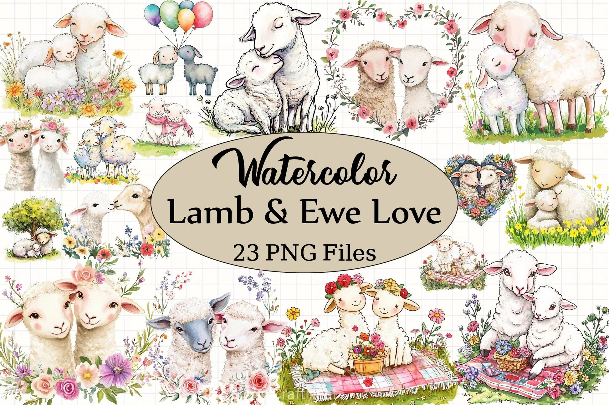 Enhance your creative projects with the Lamb & Ewe Love Clipart Bundle, featuring charming lamb and ewe designs perfect for baby showers, nursery decor, and whimsical crafts.