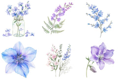 Bloom with this Larkspur Clipart, featuring vibrant flower designs, ideal for summer floral projects.