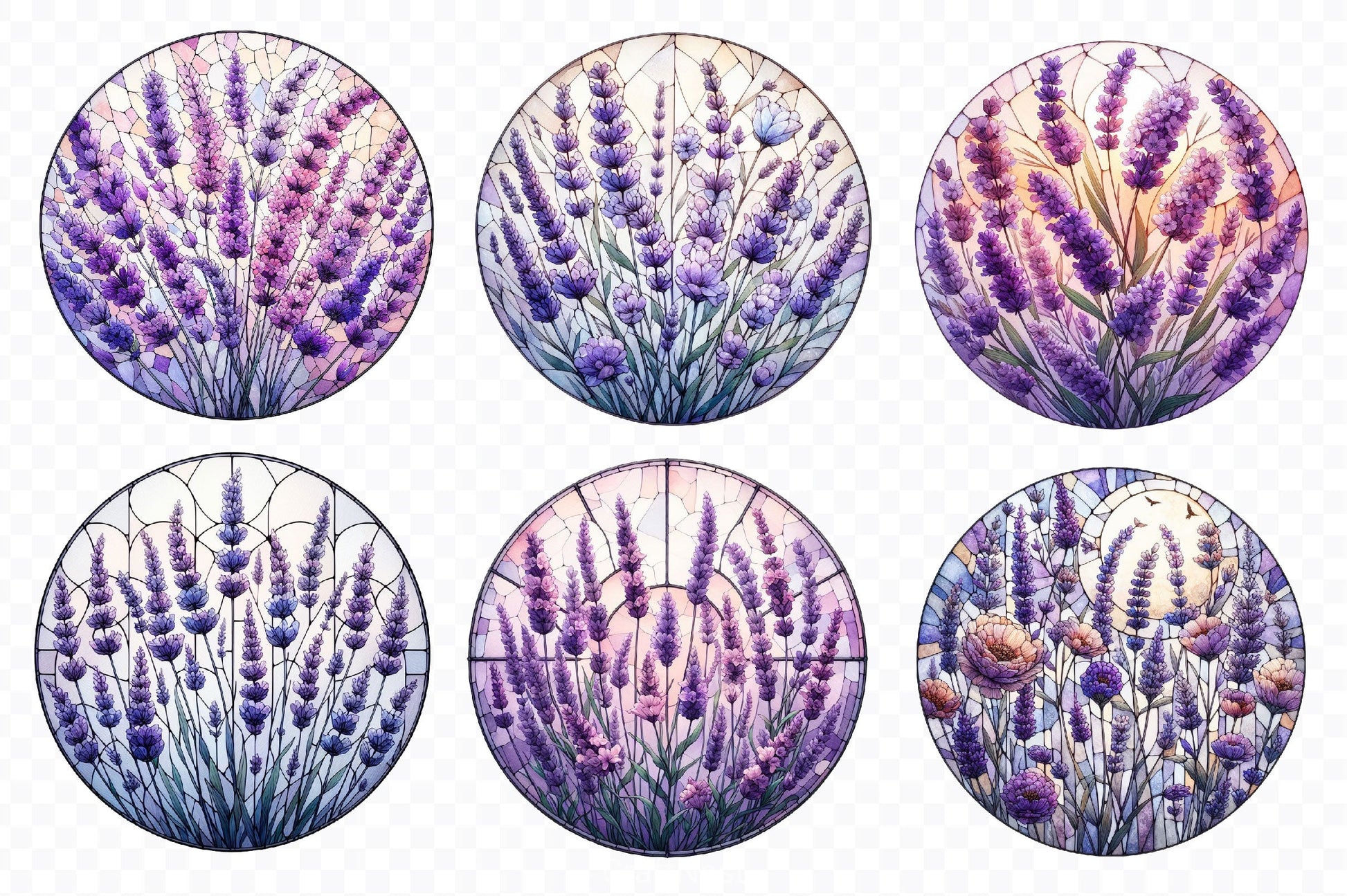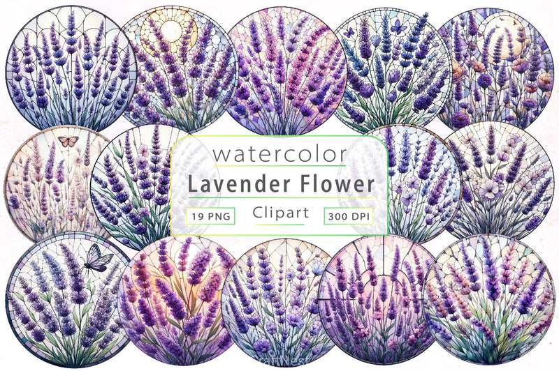 Lavender Flower Stained Glass Clipart Bundle