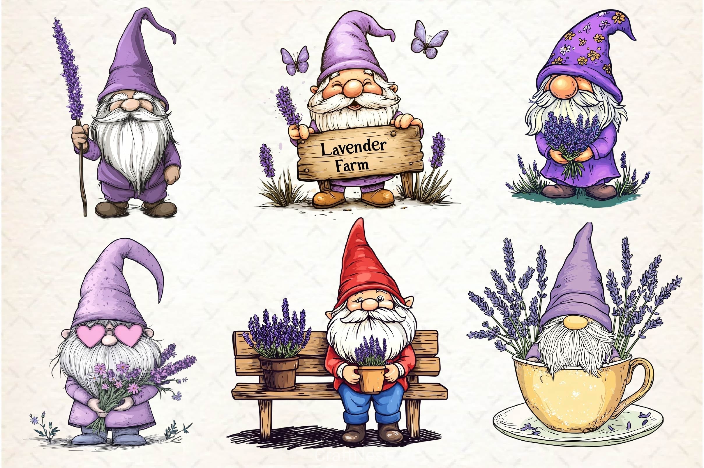 Lavender Purple Gnome Clipart Bundle 2