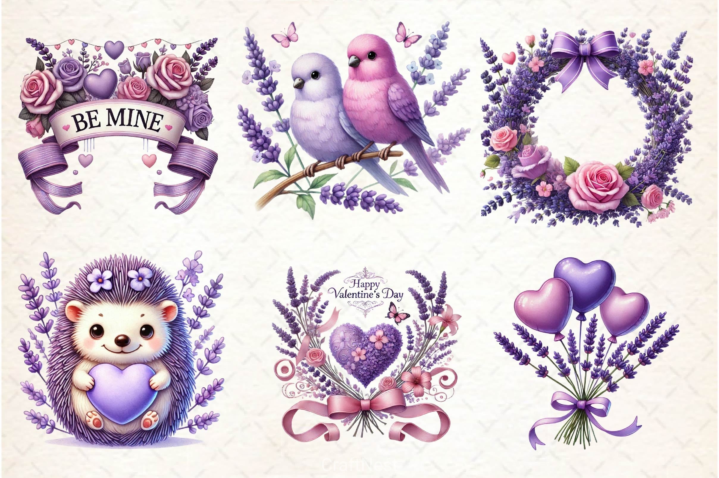 Soft lavender Valentine's Day designs for romantic floral projects.
