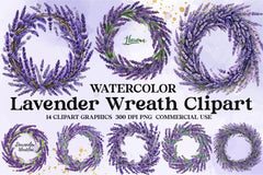 Relax with this Lavender Wreath Clipart Bundle, featuring aromatic lavender wreath designs, ideal for calming floral crafts.