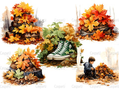 Embrace the joy of autumn with our Leaf Pile Fun clip art. These playful digital illustrations capture the essence of fall, with colorful leaves piled high and children leaping with laughter, perfect for adding a touch of seasonal whimsy and outdoor adventure to your designs, whether for autumn-themed artwork, seasonal decorations, or childhood memories, inviting viewers to relive the simple pleasures of leaf pile fun in delightful detail.