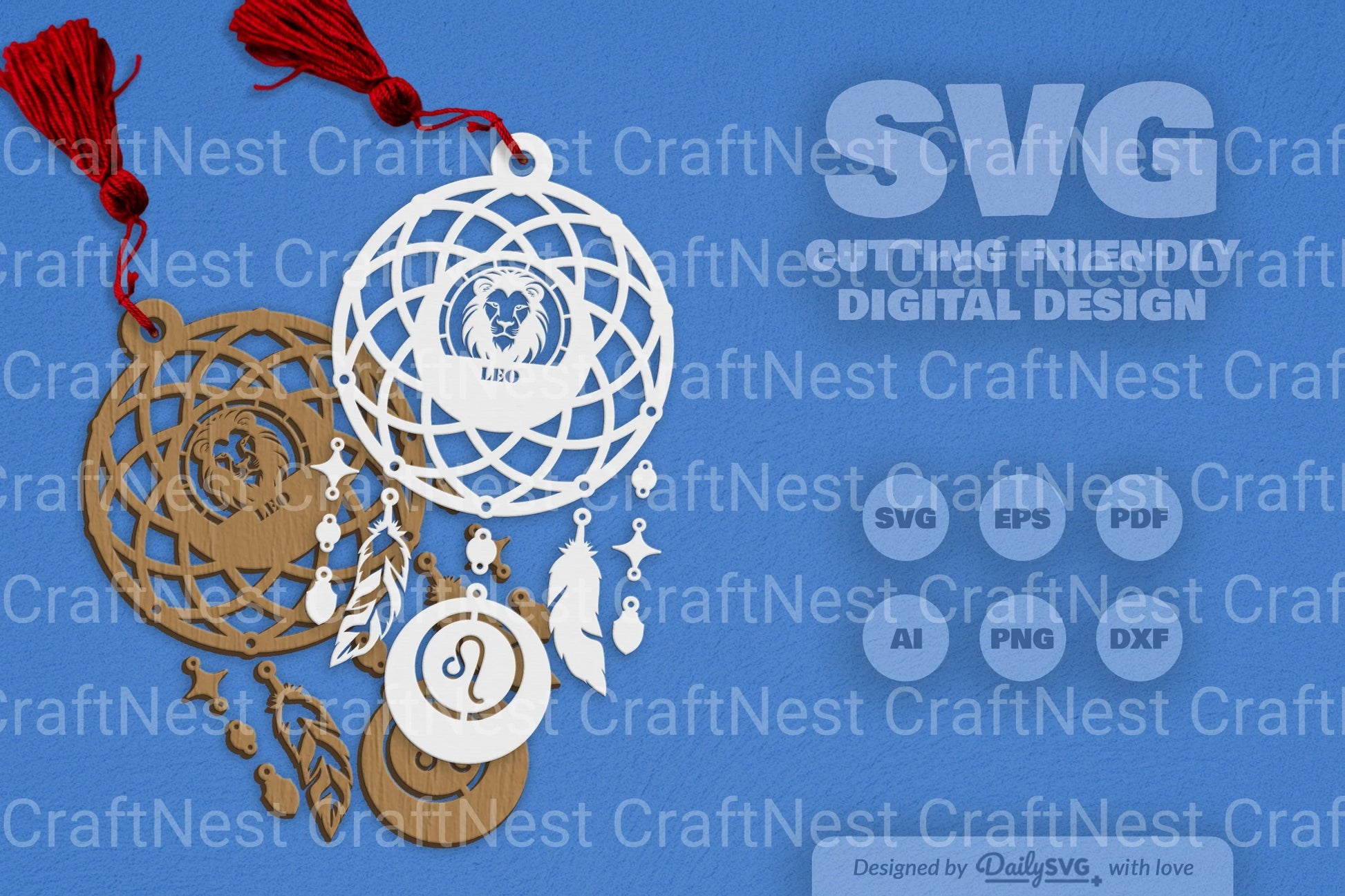 Leo Dream Catcher Laser Cut Set Clipart SVG Bundle