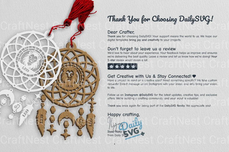 Capture dreams with the Leo Dream Catcher Set SVG Bundle, featuring intricate designs perfect for personalized crafts, home decor, and unique gifts. Ideal for crafters and DIY enthusiasts seeking to add a touch of whimsy and elegance to their projects.