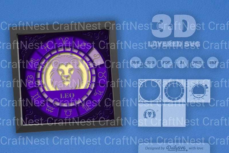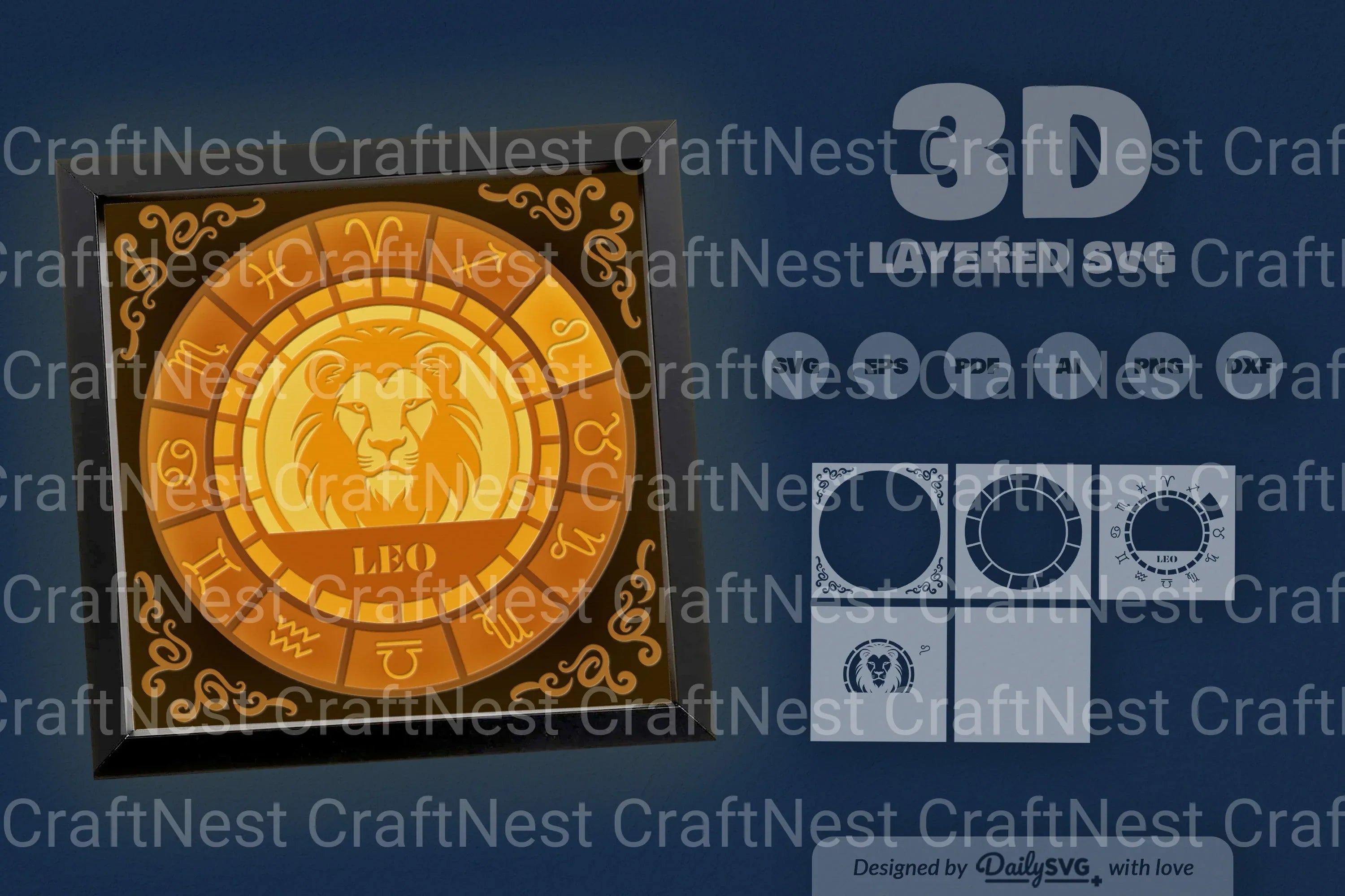 Unleash celestial creativity with the Leo Zodiac 3D Shadow Box Papercut SVG Bundle. Perfect for astrology enthusiasts, this bundle offers intricate Leo-themed designs, ideal for personalized gifts and home decor projects. Elevate your crafting with these detailed, easy-to-use SVG files, capturing the majestic essence of the Leo sign.
