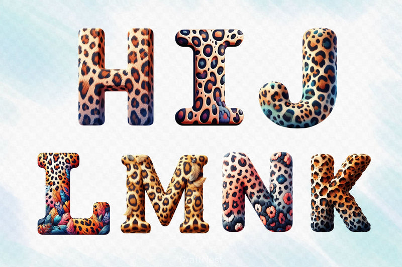 Wild with this Leopard Alphabet Clipart Bundle, featuring animal print letter designs, perfect for safari education crafts.
