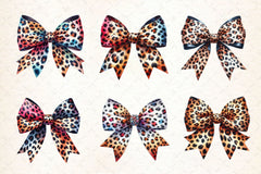 Pattern with this Leopard Bows Clipart Bundle, featuring wild print bow designs, perfect for animal fashion crafts.