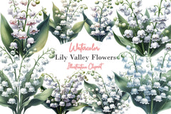 Bloom with this Lily Of The Valley Flowers Clipart Bundle, featuring delicate spring flower designs, perfect for elegant floral crafts.