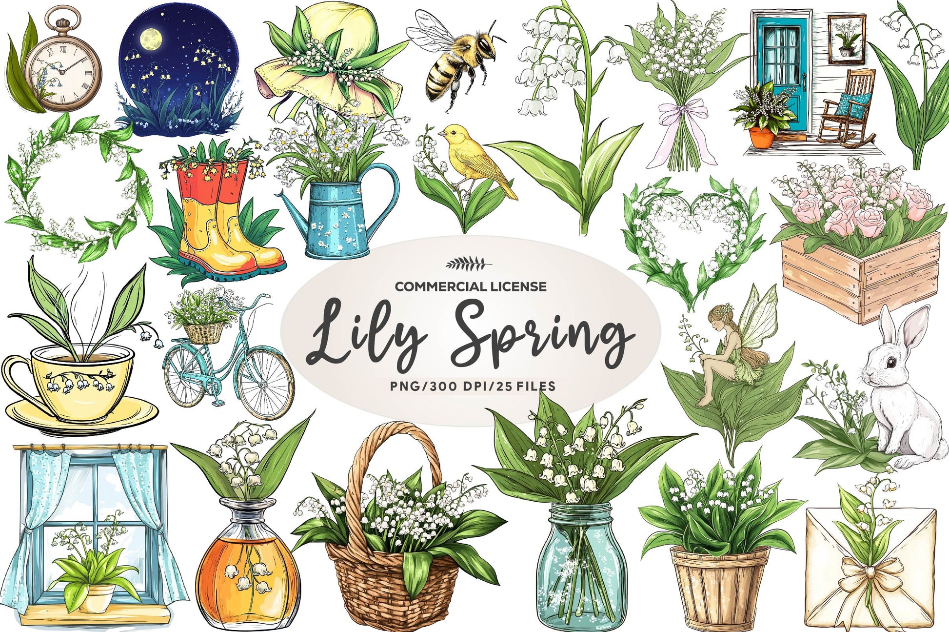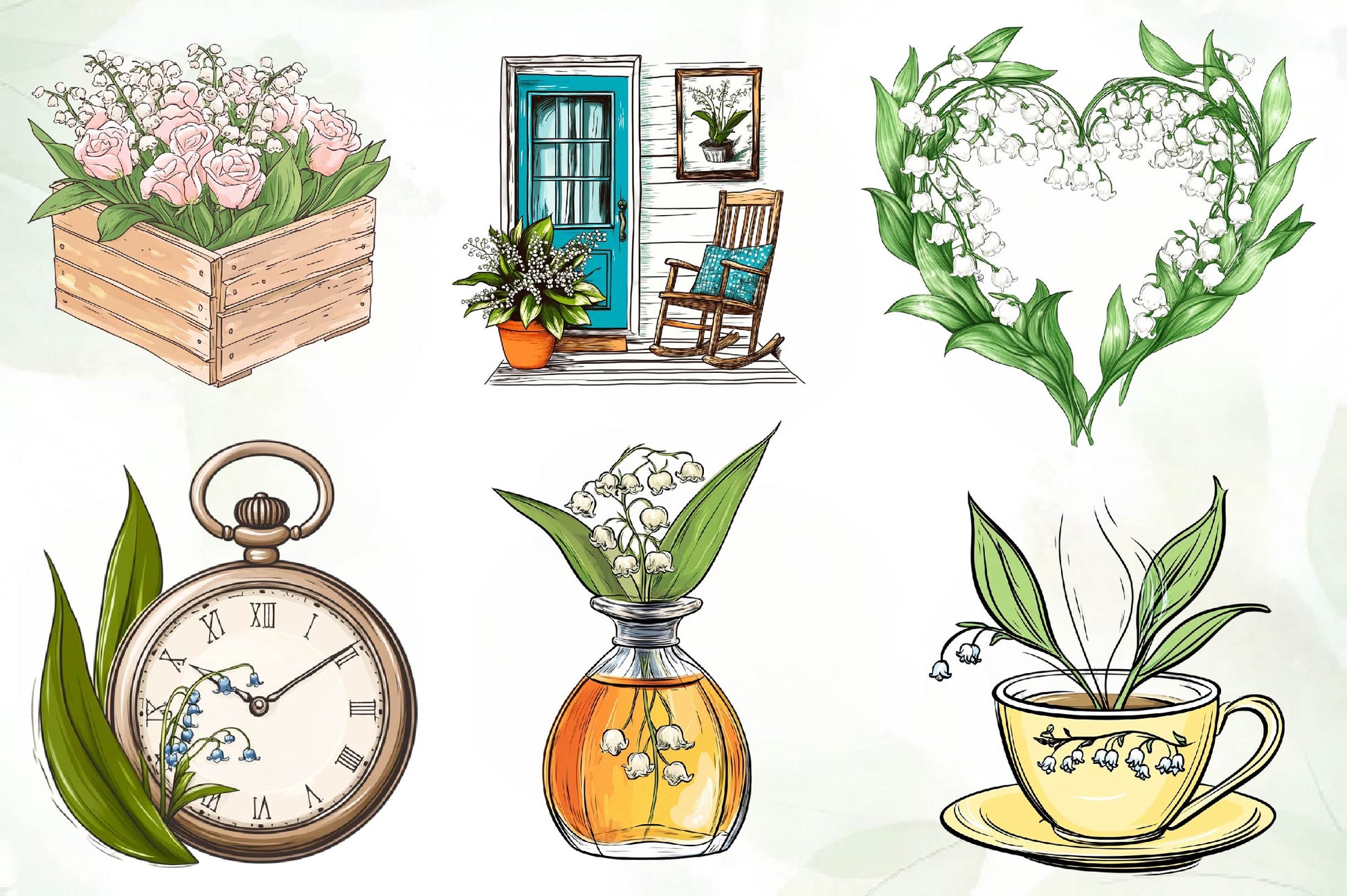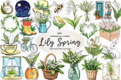 Blossom with this Lily Of The Valley Spring Clipart Bundle, featuring lily designs, perfect for spring crafts.