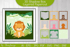 Lion Animals Shadow Box Layered Papercut SVG Bundle