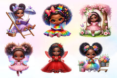 Little Black Fairy African Girl Watercolor Clipart Bundle