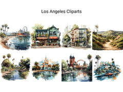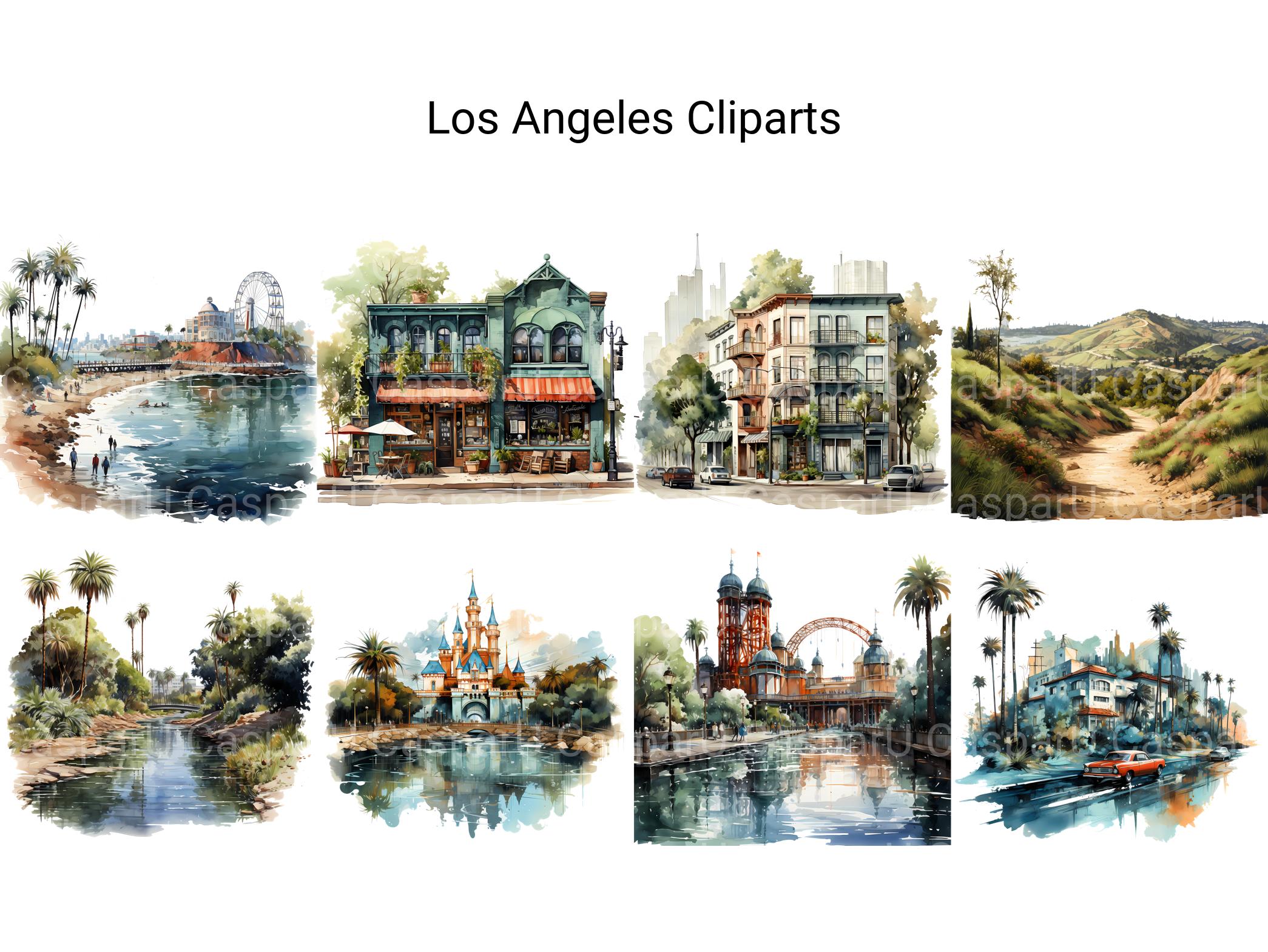 Experience the sun-soaked glamour of Los Angeles with digital clip art showcasing its iconic landmarks, palm-lined boulevards, and vibrant culture. From the iconic Hollywood Sign to the trendy boutiques of Rodeo Drive, these illustrations offer a glimpse into the allure and excitement of LA, perfect for adding a touch of West Coast flair to your projects, whether for travel brochures, entertainment blogs, or artistic creations, inviting viewers to bask in the laid-back luxury of the City of Angels.