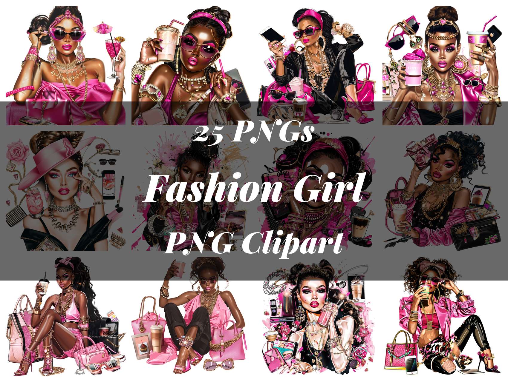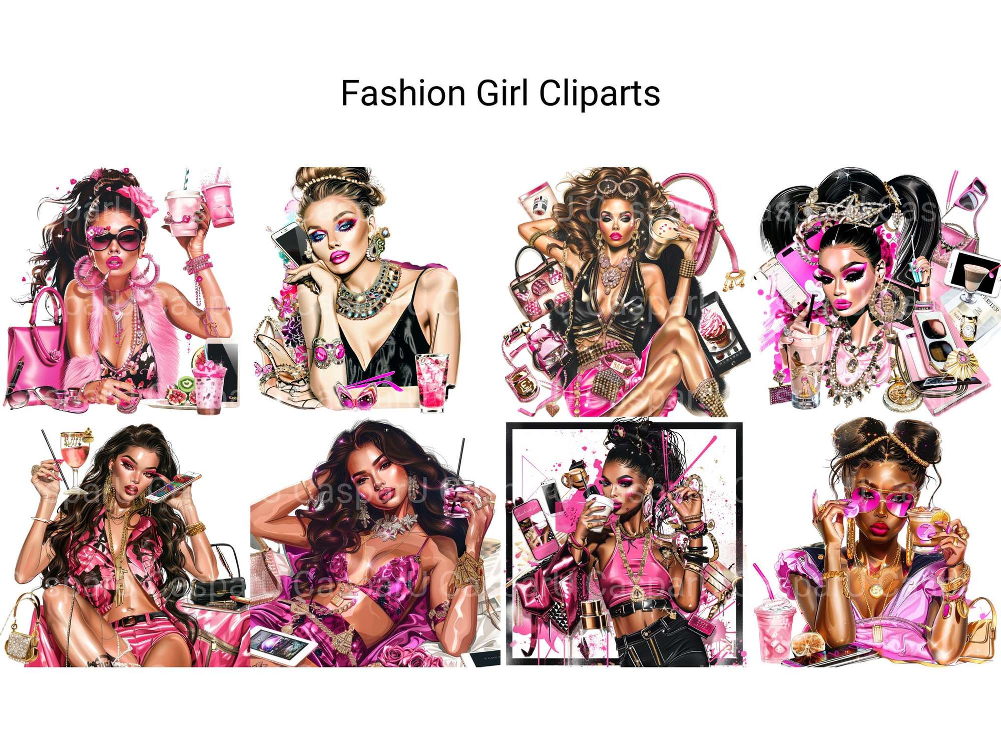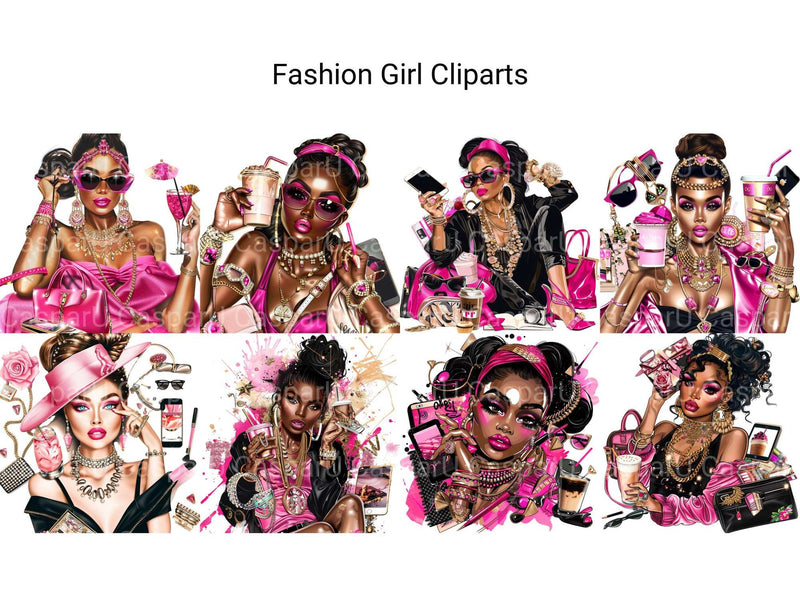 Strut your stuff with this Fashion Girl Clipart bundle, featuring trendy designs, ideal for stylish projects.