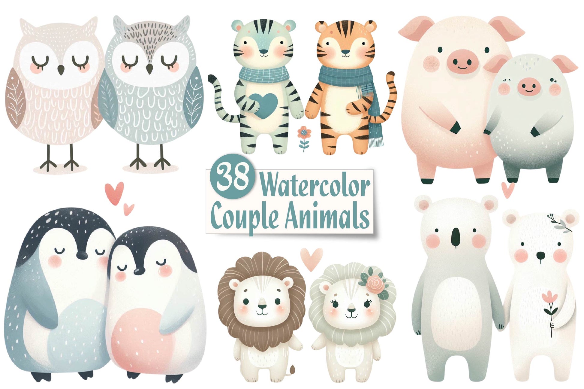 Love with this Love Couple Animals Clipart Bundle, featuring animal couples, ideal for romantic pet crafts.