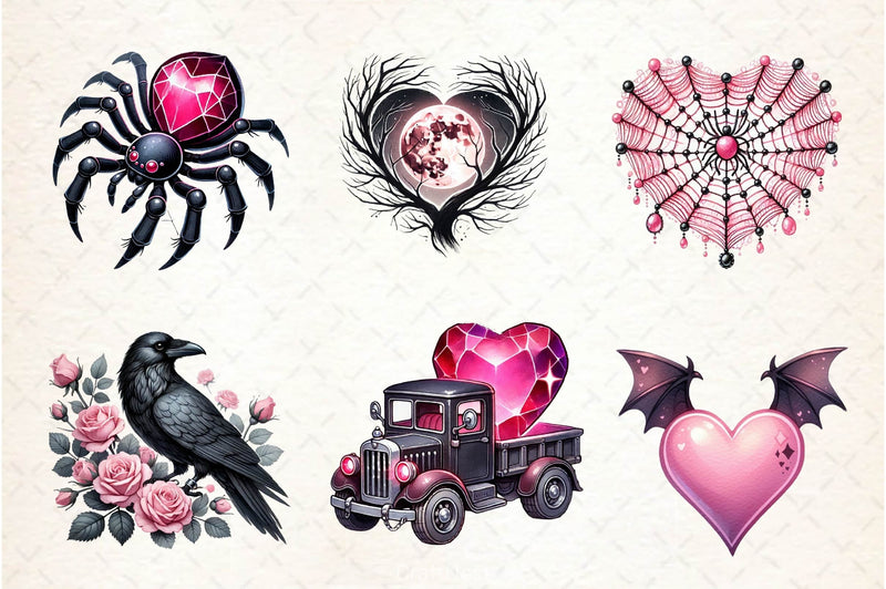 Dark romantic Valentine's Day designs with gothic aesthetic.