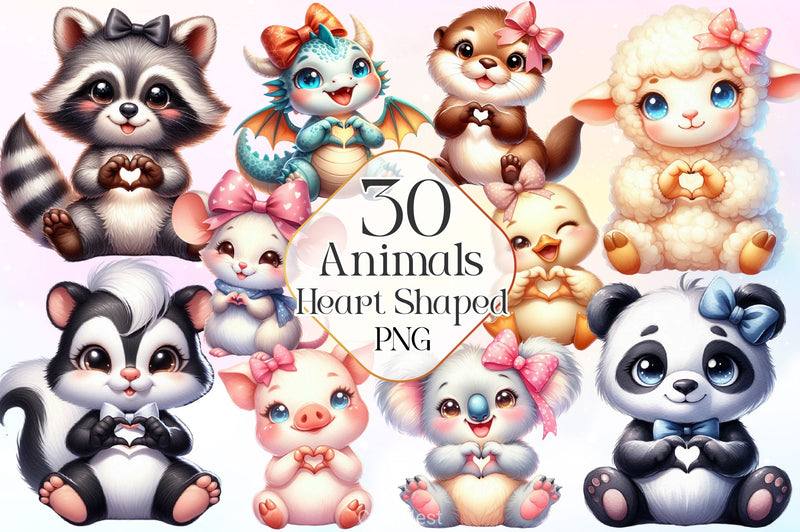 Love with this Lovely Animals Heart Shaped Clipart Bundle, featuring heart-shaped animal designs, perfect for romantic pet crafts.