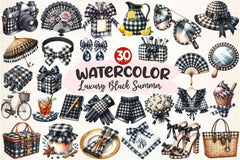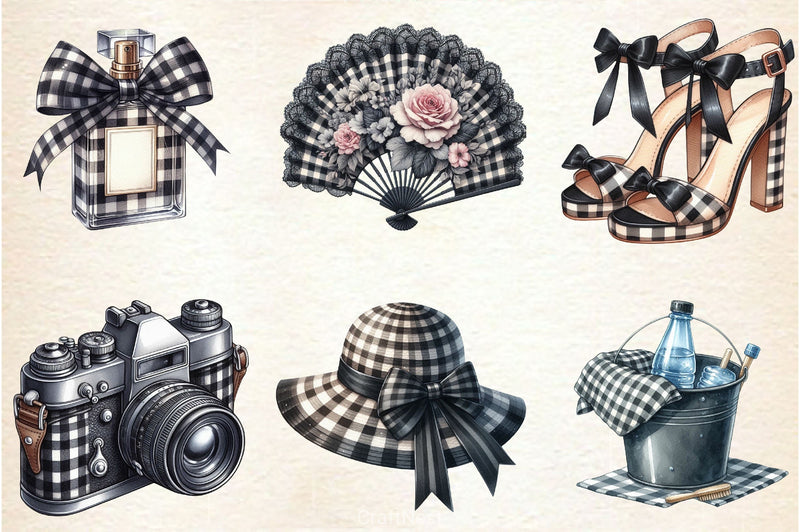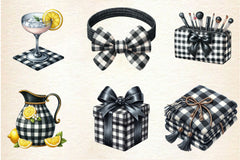 Pattern with this Luxury Black Gingham Summer Clipart Bundle, featuring elegant checkered designs, perfect for sophisticated summer crafts.