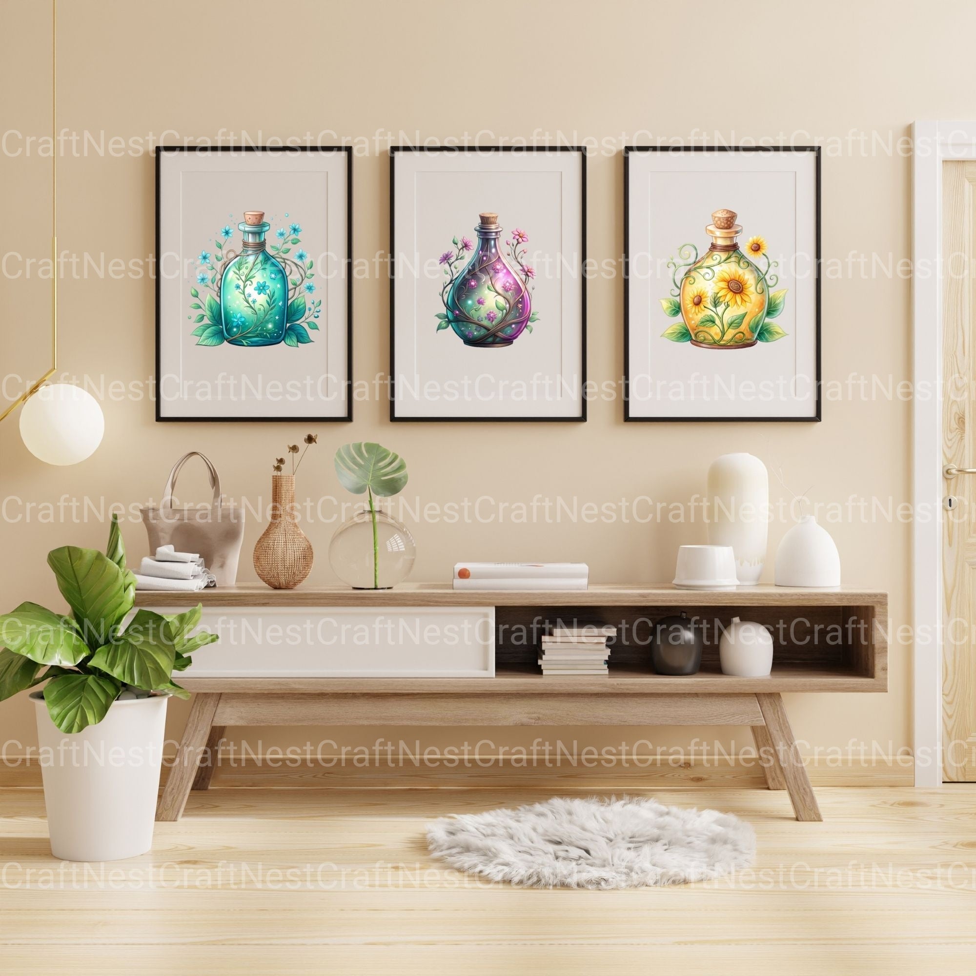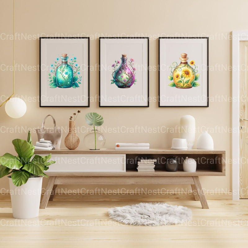 Brew with this Magic Potion Bottles 15 Clipart Bundle, featuring mystical potion bottle designs, ideal for witchy crafts.