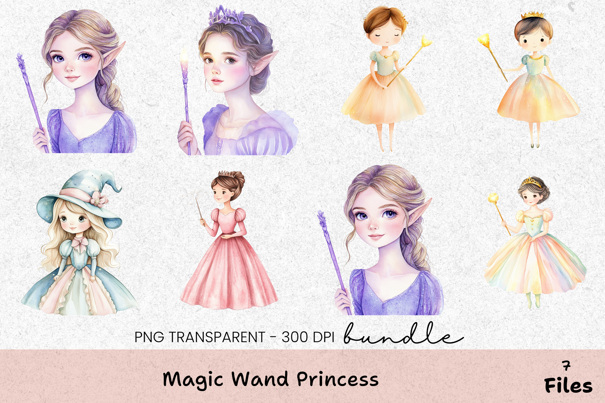 Discover endless possibilities with the Magic Wand Princess Clipart Bundle, a must-have for any creative project needing a touch of magic and royalty.