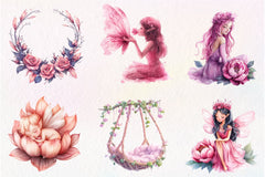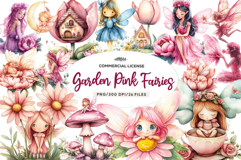 Magical Garden Pink Fairies Clipart Bundle