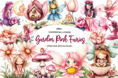 Enchant with this Magical Garden Pink Fairies Clipart Bundle, featuring mystical garden designs, perfect for fairy nature crafts.