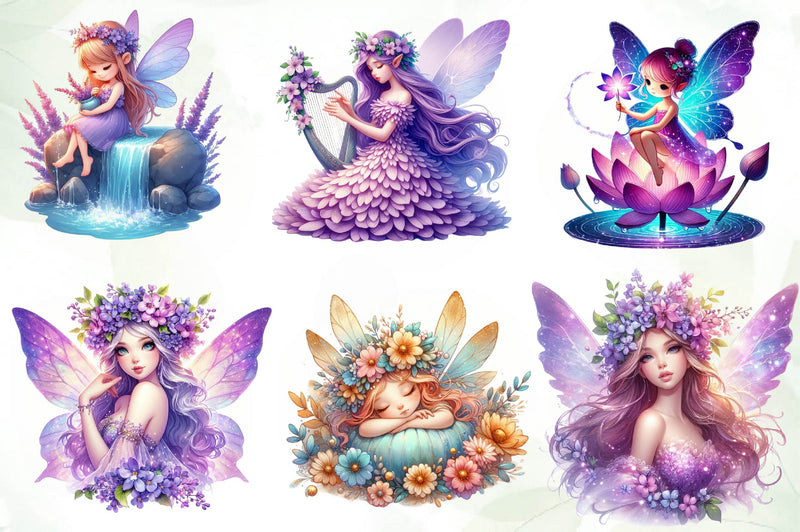 Magical Garden Purple Fairies Clipart Bundle 2