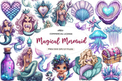 Dive with this Magical Mermaid Clipart Bundle, featuring enchanted sea designs, perfect for mermaid fantasy crafts.