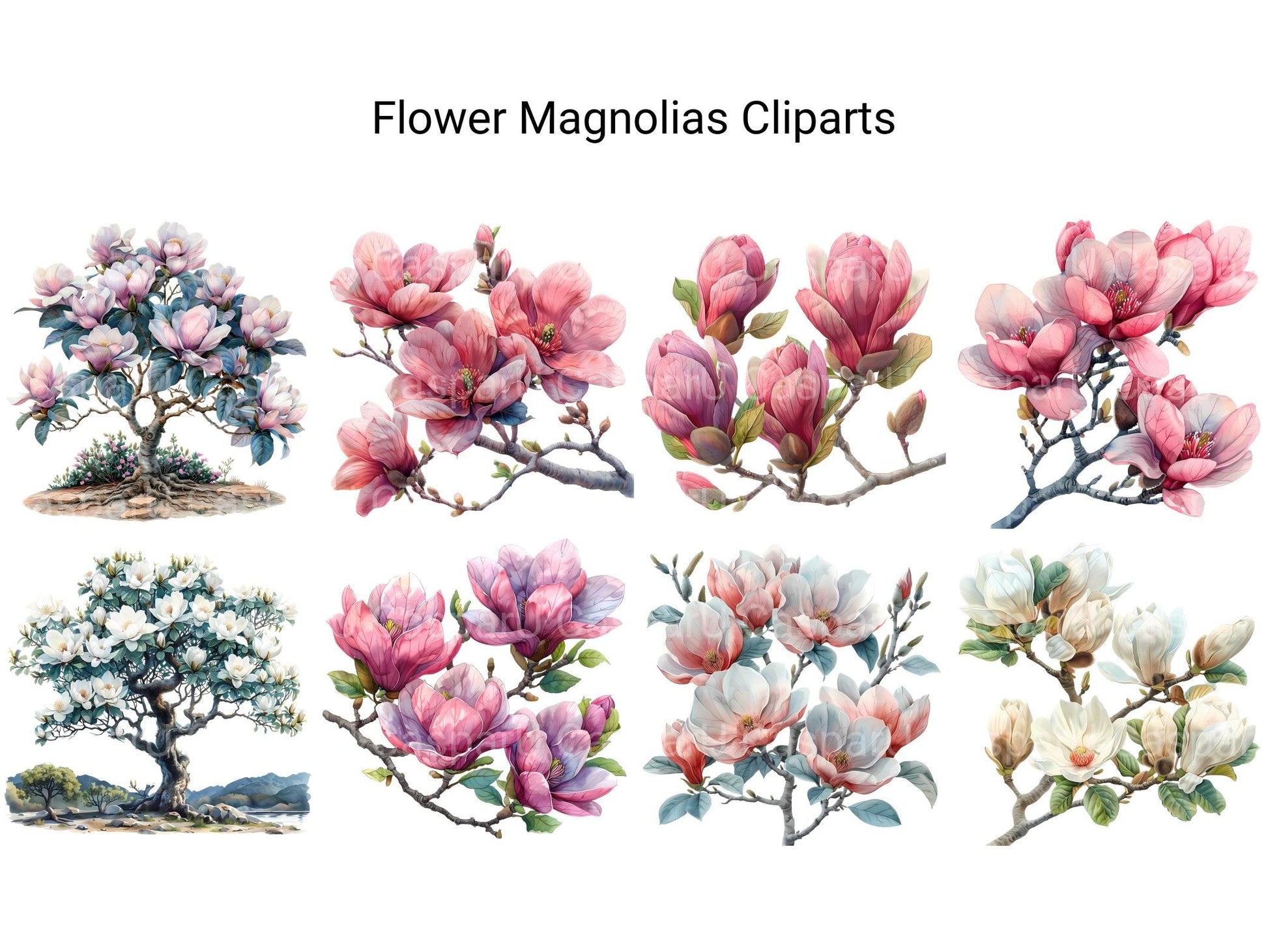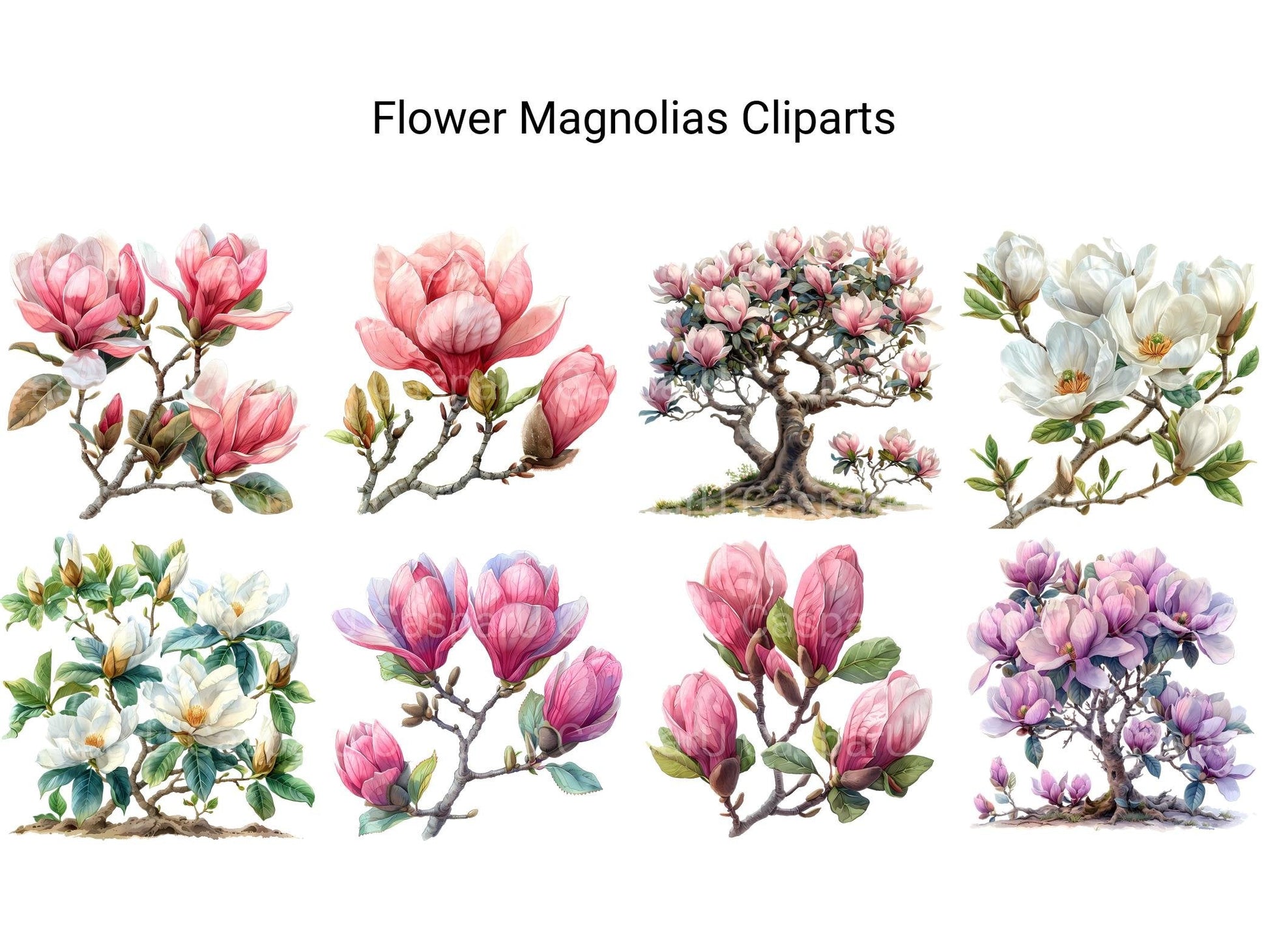 Discover the timeless allure of magnolia flowers with our digital clip art series. These elegant clip arts showcase the exquisite blooms and glossy foliage of magnolia trees, adding a touch of southern charm to your digital designs, cards, and decorations. Whether you're creating wedding stationery or designing digital art, these magnolia clip arts will infuse your projects with natural beauty and classic sophistication.