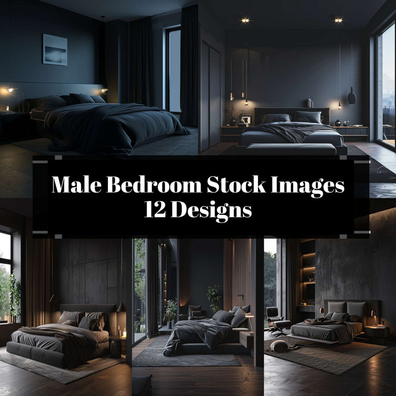 Design bold with this Male Bedroom Stock Images set, featuring masculine room vibes, perfect for decor magazines.