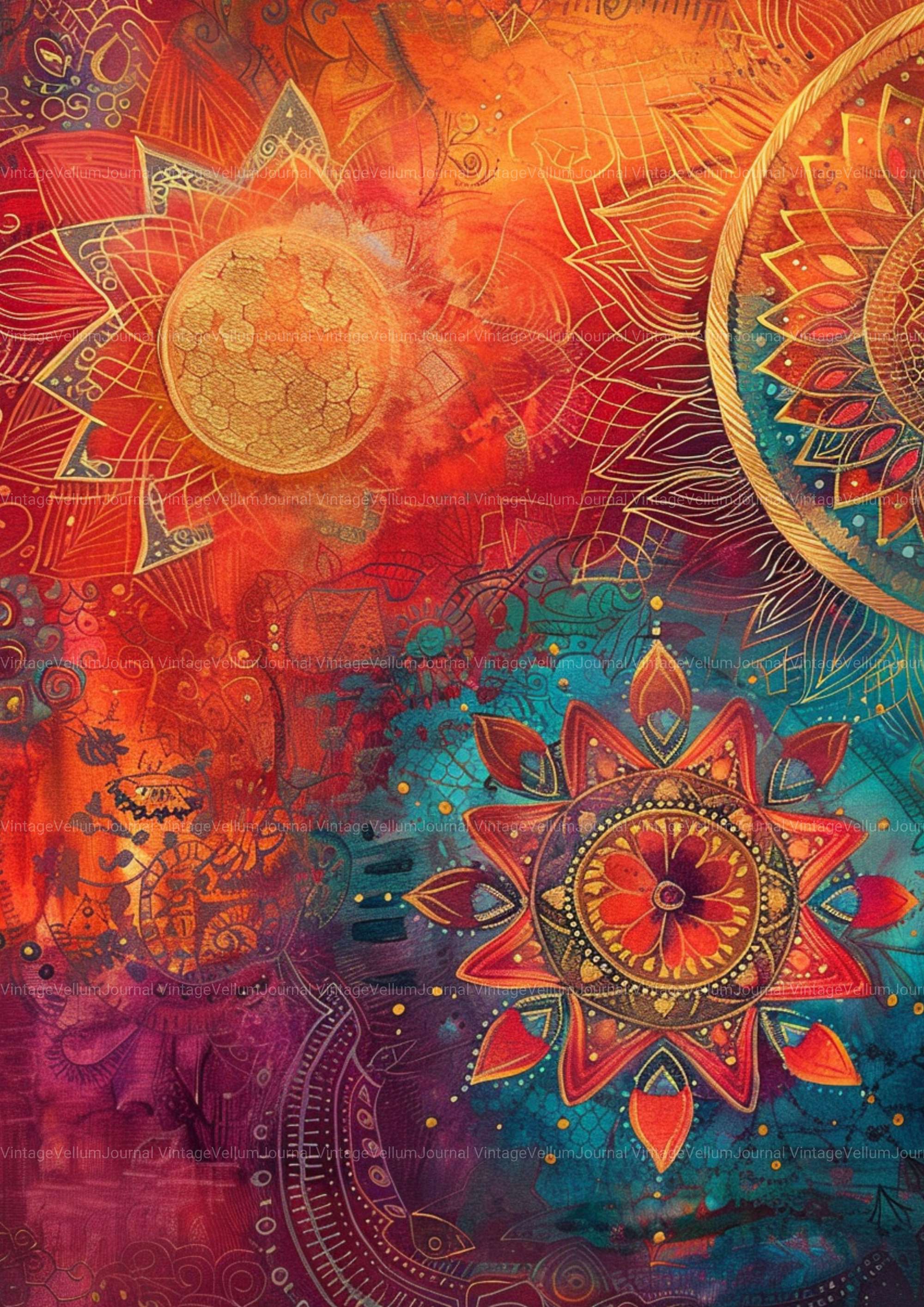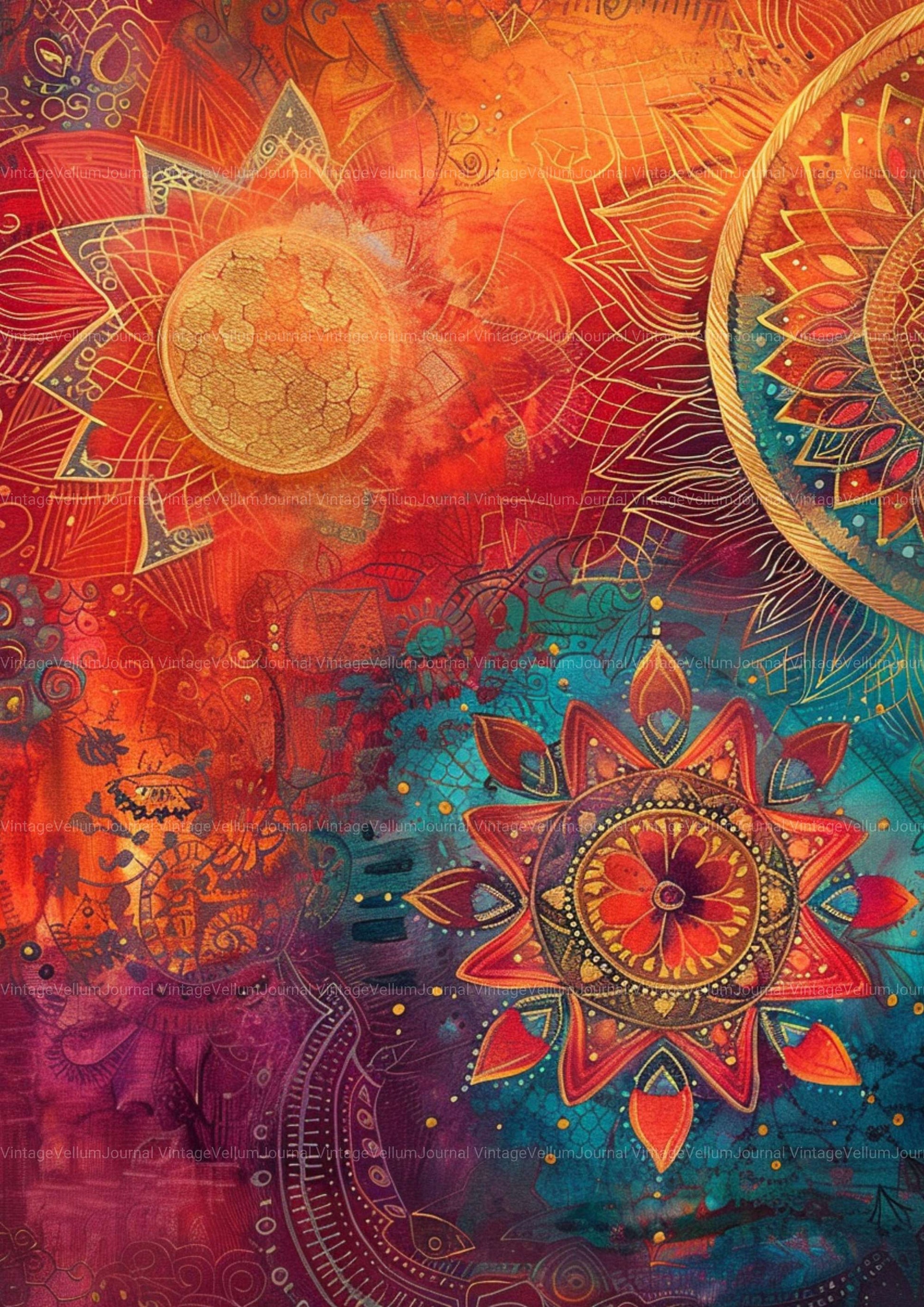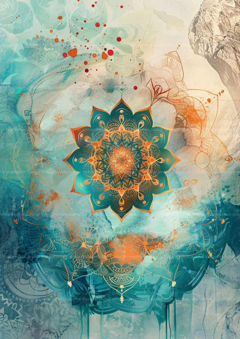 Find balance with this Mandala digital junk journal, adorned with intricate symmetrical patterns, perfect for a scrapbook of meditative art.