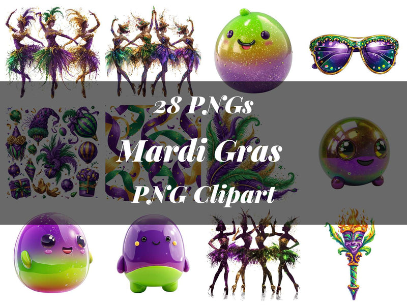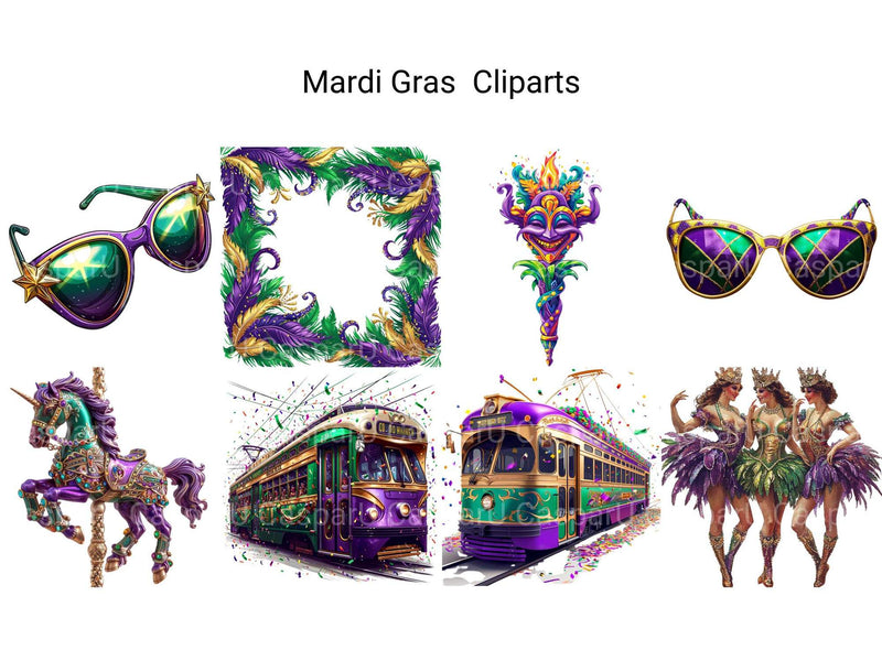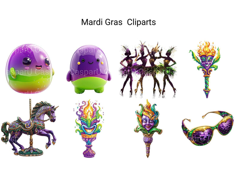 Party on with this Mardi Gras Clipart pack, adding festive designs with backgrounds, perfect for vibrant celebrations.