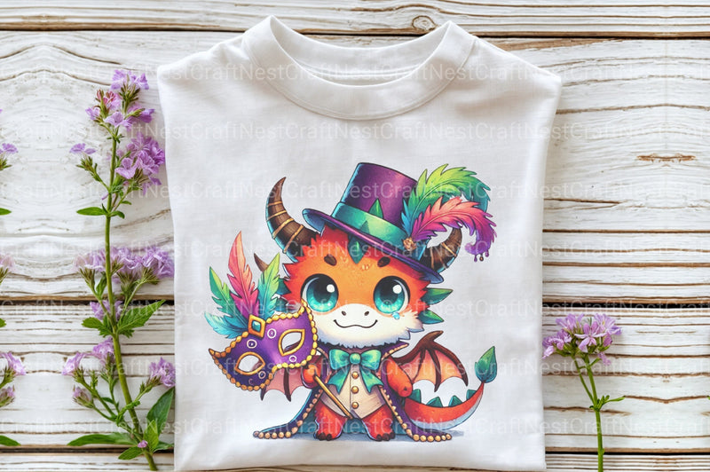 Fly with this Mardi Gras Cartoon Dragon Clipart Bundle, featuring festive dragon designs, perfect for fantasy carnival crafts.