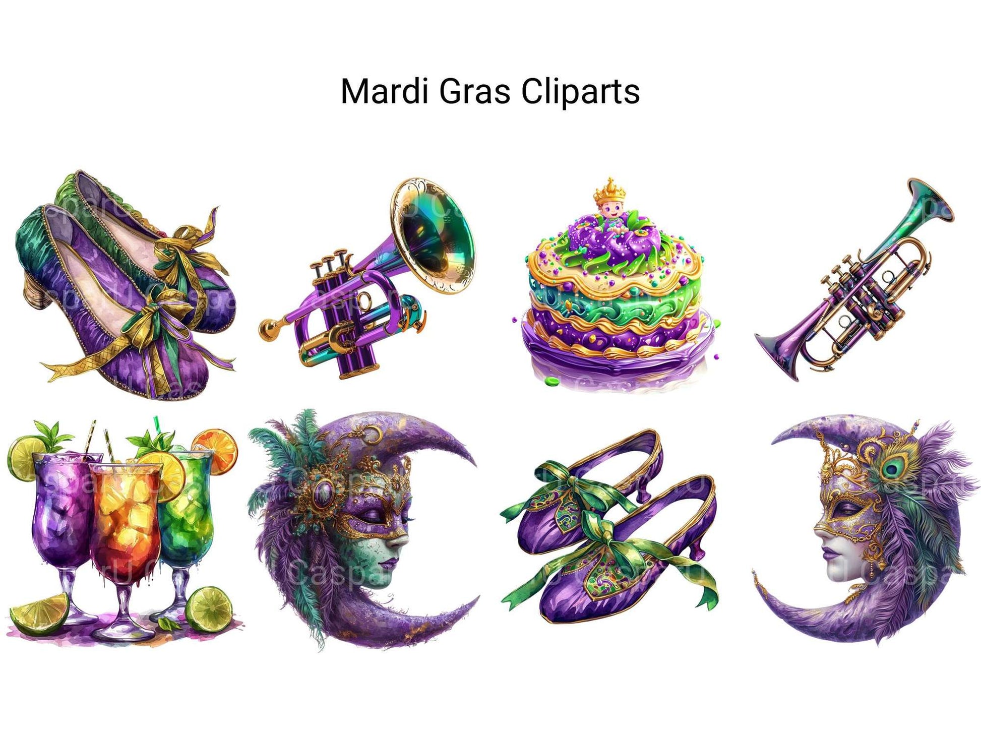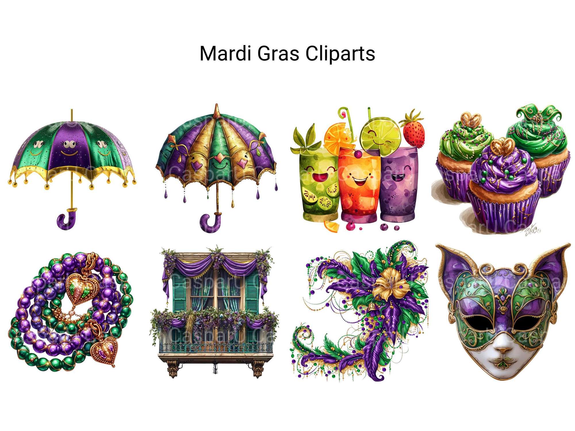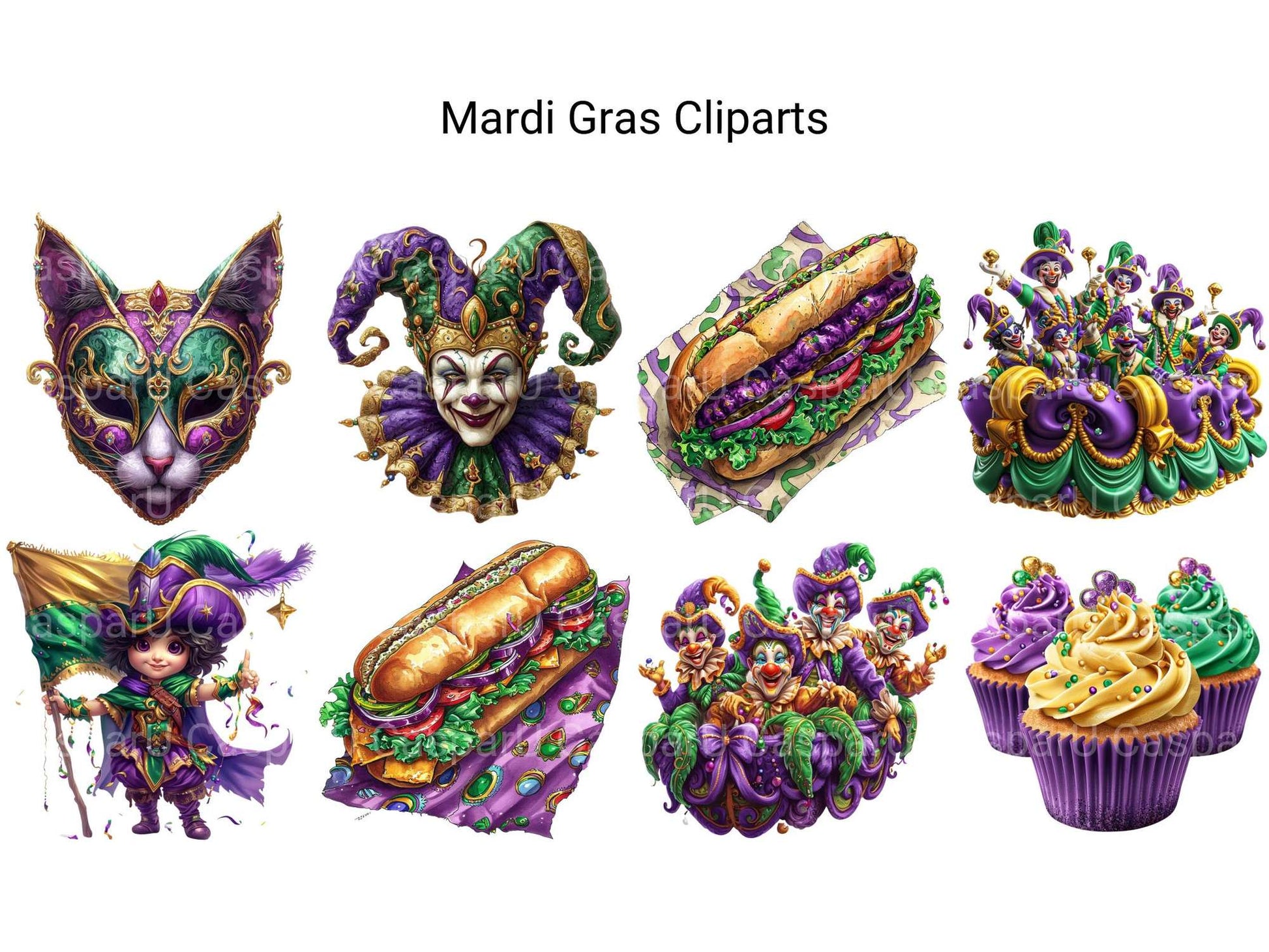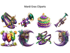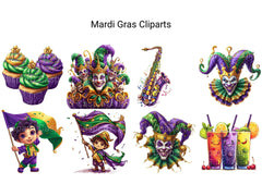 Party on with this Mardi Gras Bonus Clipart pack, adding festive designs with backgrounds, perfect for vibrant celebrations.