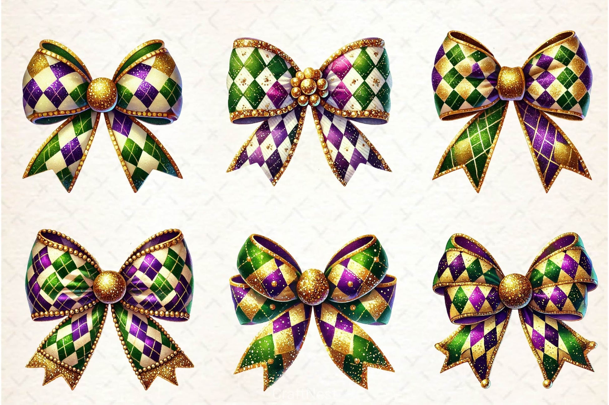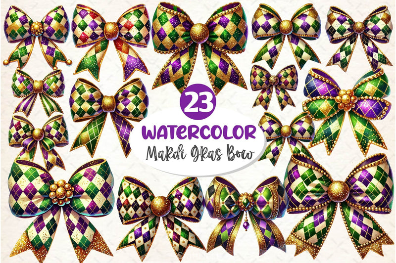Mardi Gras Coquette Bow Clipart Bundle 2
