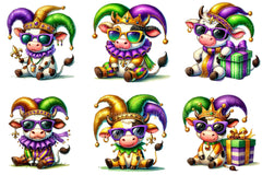 Moo with this Mardi Gras Cow Clipart Bundle, featuring party cow designs, perfect for carnival farm crafts.