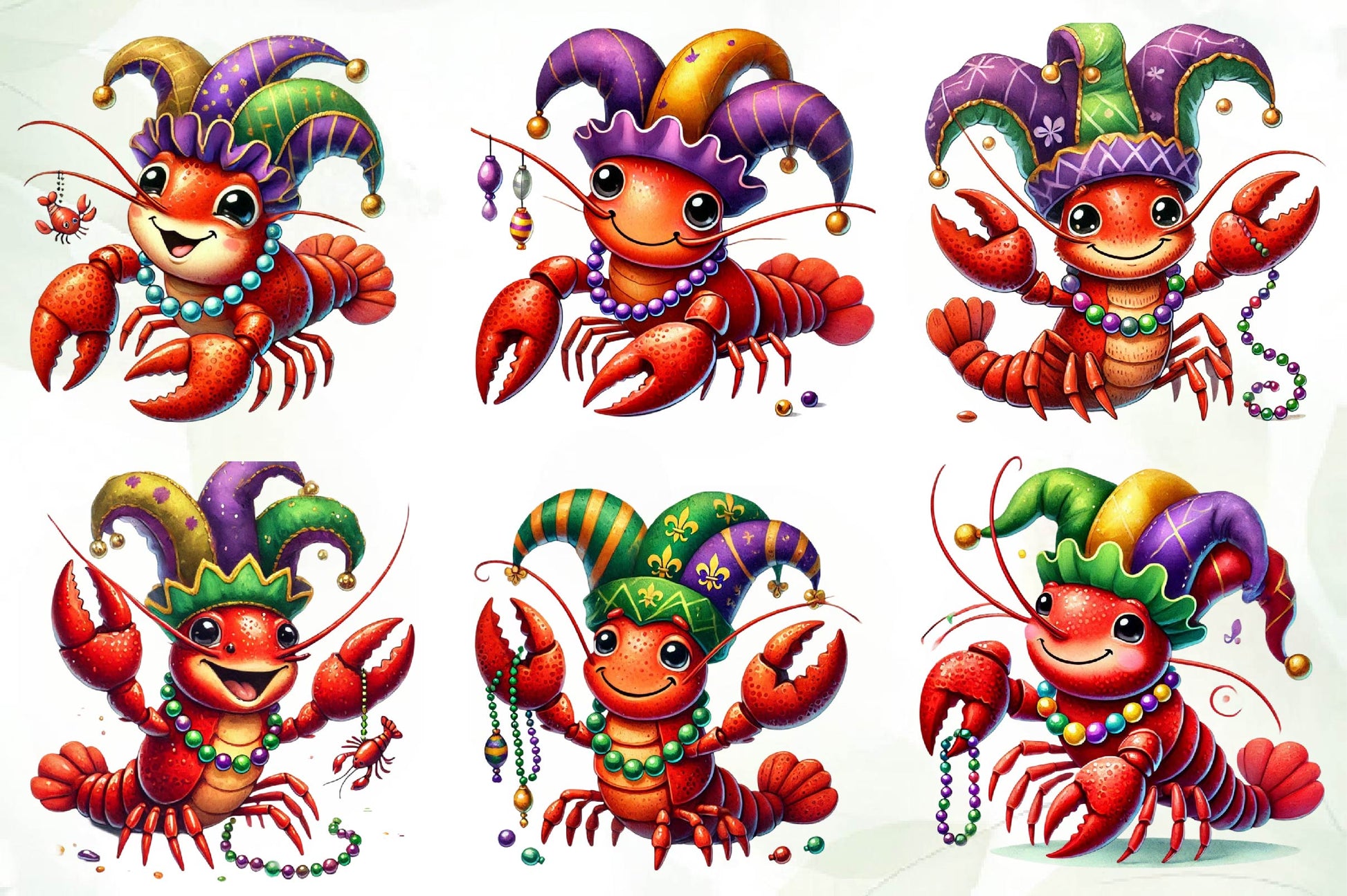 Celebrate with this Mardi Gras Crawfish Clipart Bundle, featuring festive seafood designs, perfect for Mardi Gras crafts.