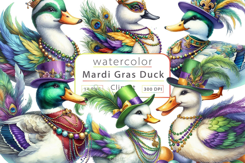 Festive ducks celebrating Mardi Gras for carnival animal projects.