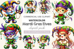 Enchant with this Mardi Gras Elves Clipart Bundle, featuring festive elf designs, perfect for magical carnival crafts.