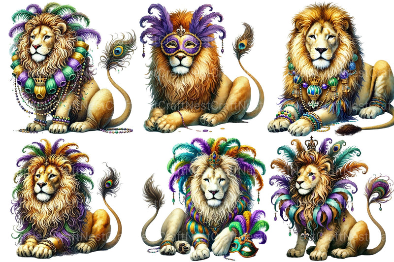 Rule with this Mardi Gras Lion Clipart Bundle, featuring royal lion designs, ideal for carnival majesty crafts.