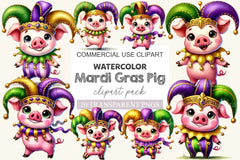 Party with this Mardi Gras Pig Clipart Bundle, featuring festive pig designs, ideal for carnival farm crafts.