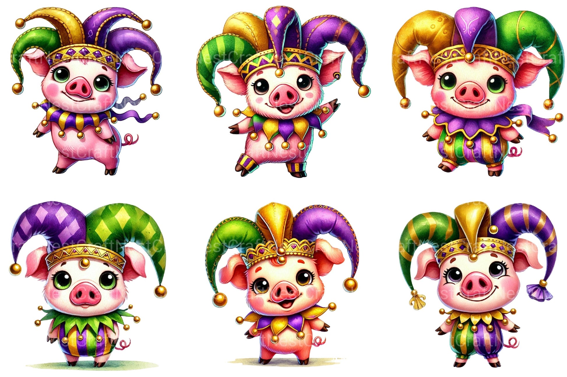 Mardi Gras Pig Clipart Bundle