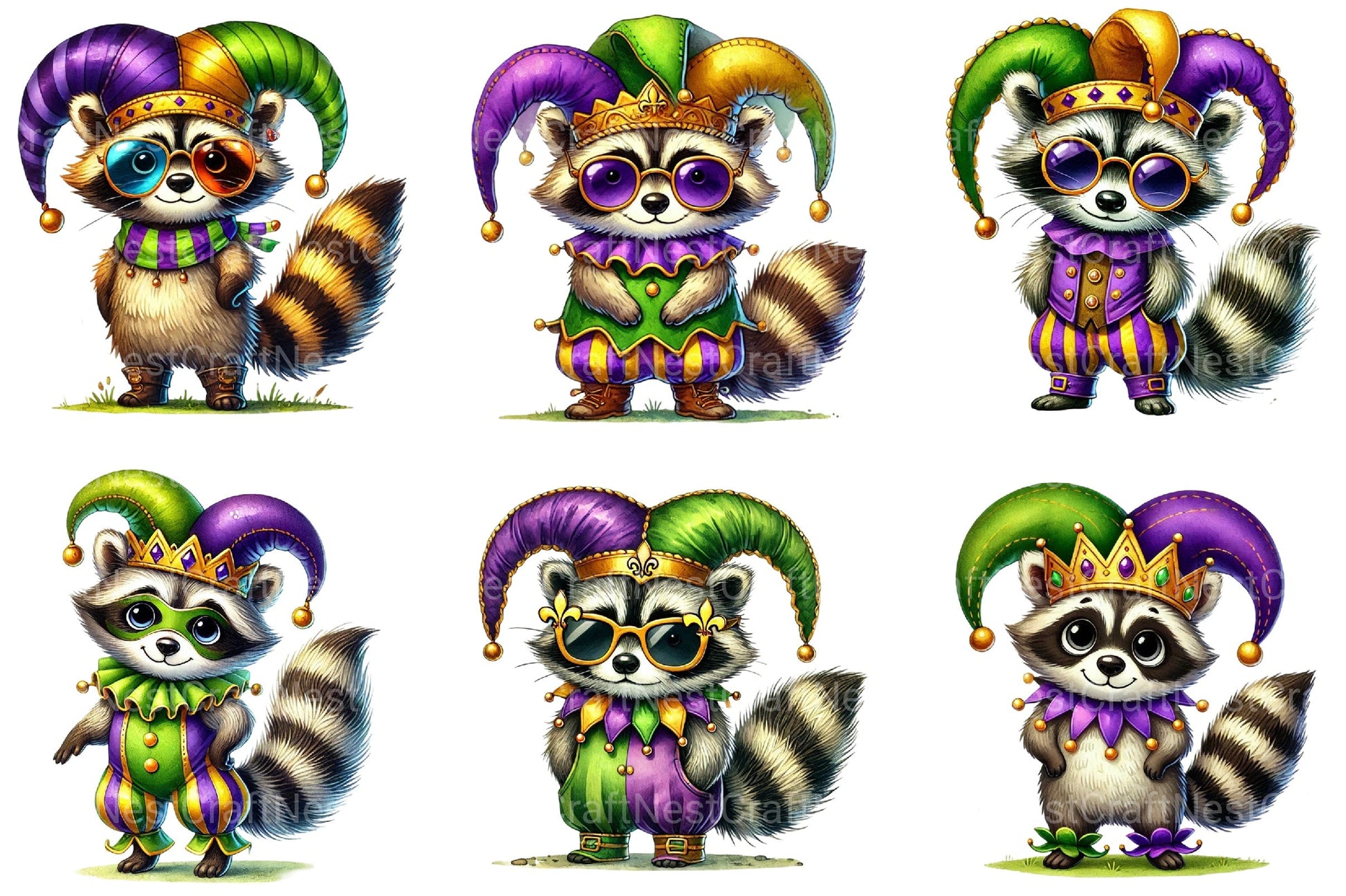 Mask with this Mardi Gras Raccoon Clipart Bundle, featuring sneaky raccoon designs, perfect for carnival mischief crafts.